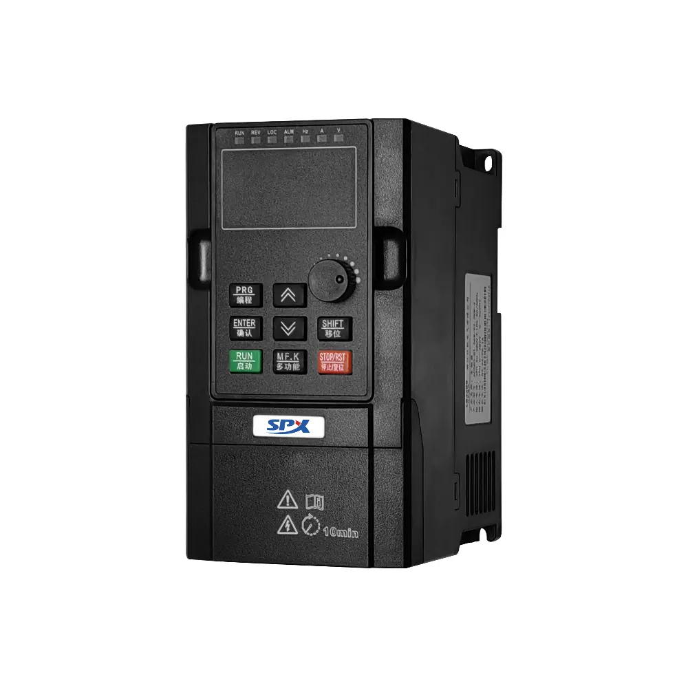 SPX højkvalitets AC-frekvensomformer VFD Trefaset til Enkeltfaset På værksteder, familiegårde, gamle butikker eller fjerntliggende steder kan et typisk elektrisk dilemma løses: Der er kun en 220V enfaset strømforsyning på stedet, men det centrale udstyr, der skal drives (såsom vandpumper, blæsere, værktøjsmaskiner) er en standard trefaset motormaskine. Traditionelle løsninger (udskiftning af motorer, installation af faseomformere) har ofte høje omkostninger, lav effektivitet eller begrænset funktionalitet. Det er ikke kun en frekvensomformer, men også en intelligent "power translator" og "power optimizer", der grundlæggende rekonstruerer muligheden for at opnå og bruge elektricitet.